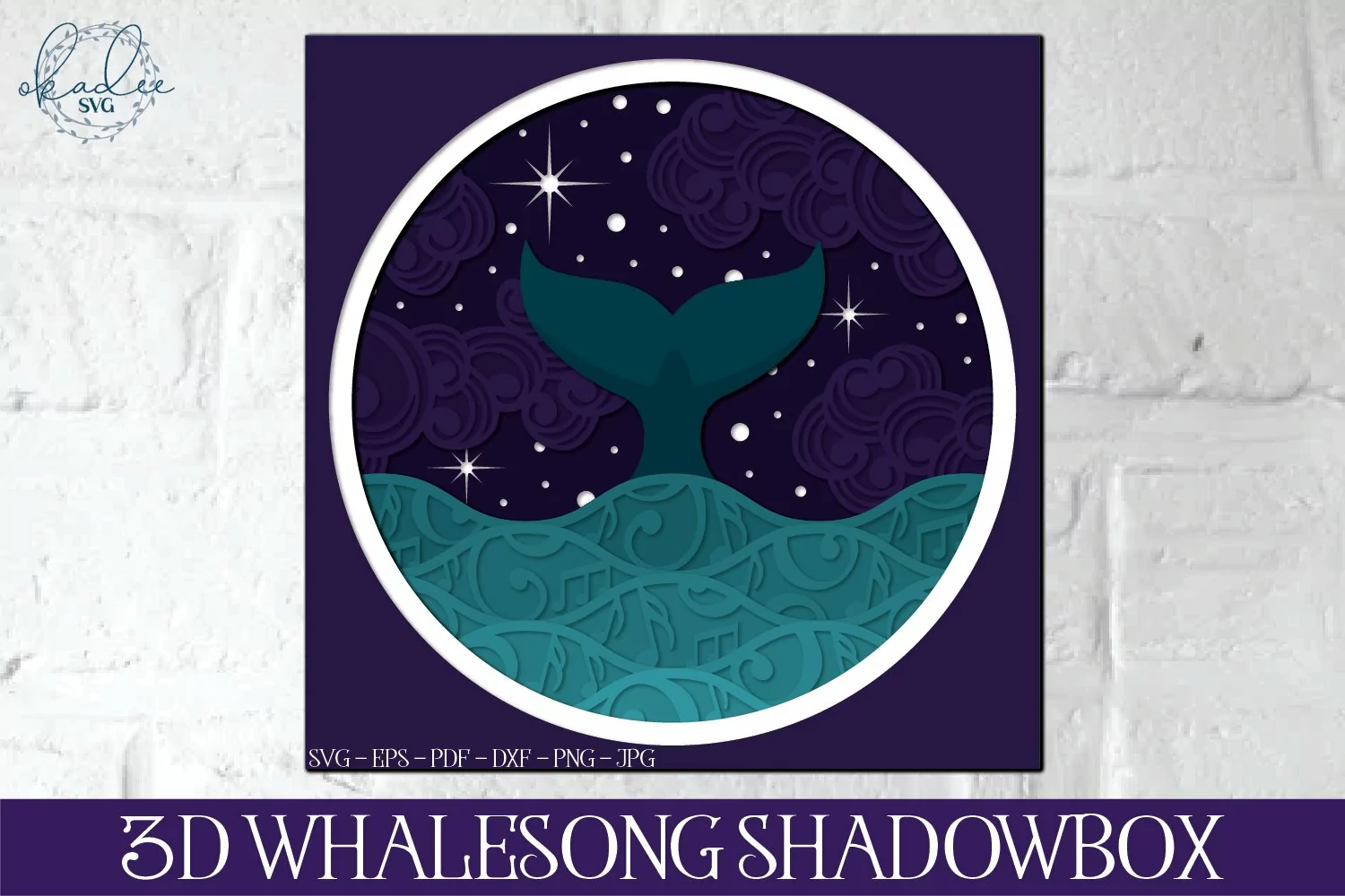 3D Whalesong Shadowbox| Layered Papercut SVG example image 1