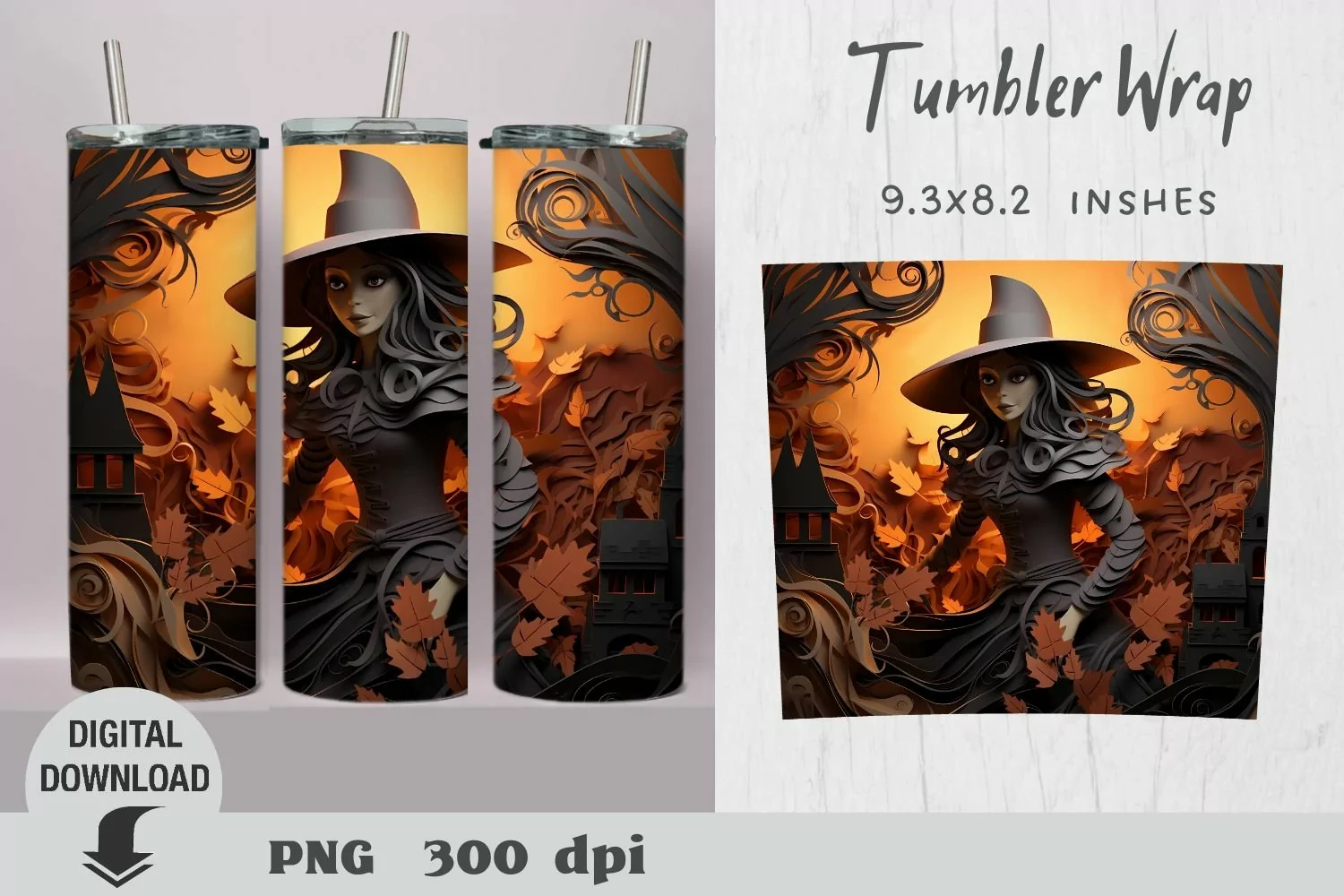 Halloween 3d Tumbler Wrap, witch 3d sublimation, tumbler example image 1