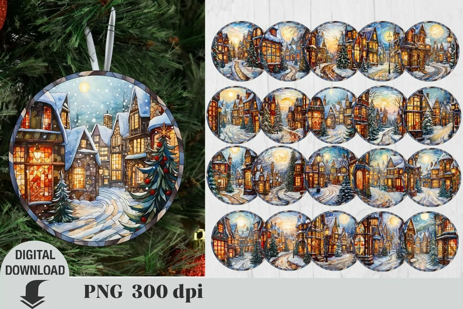 Christmas Ornaments Bundle, Sublimation, Stained glass