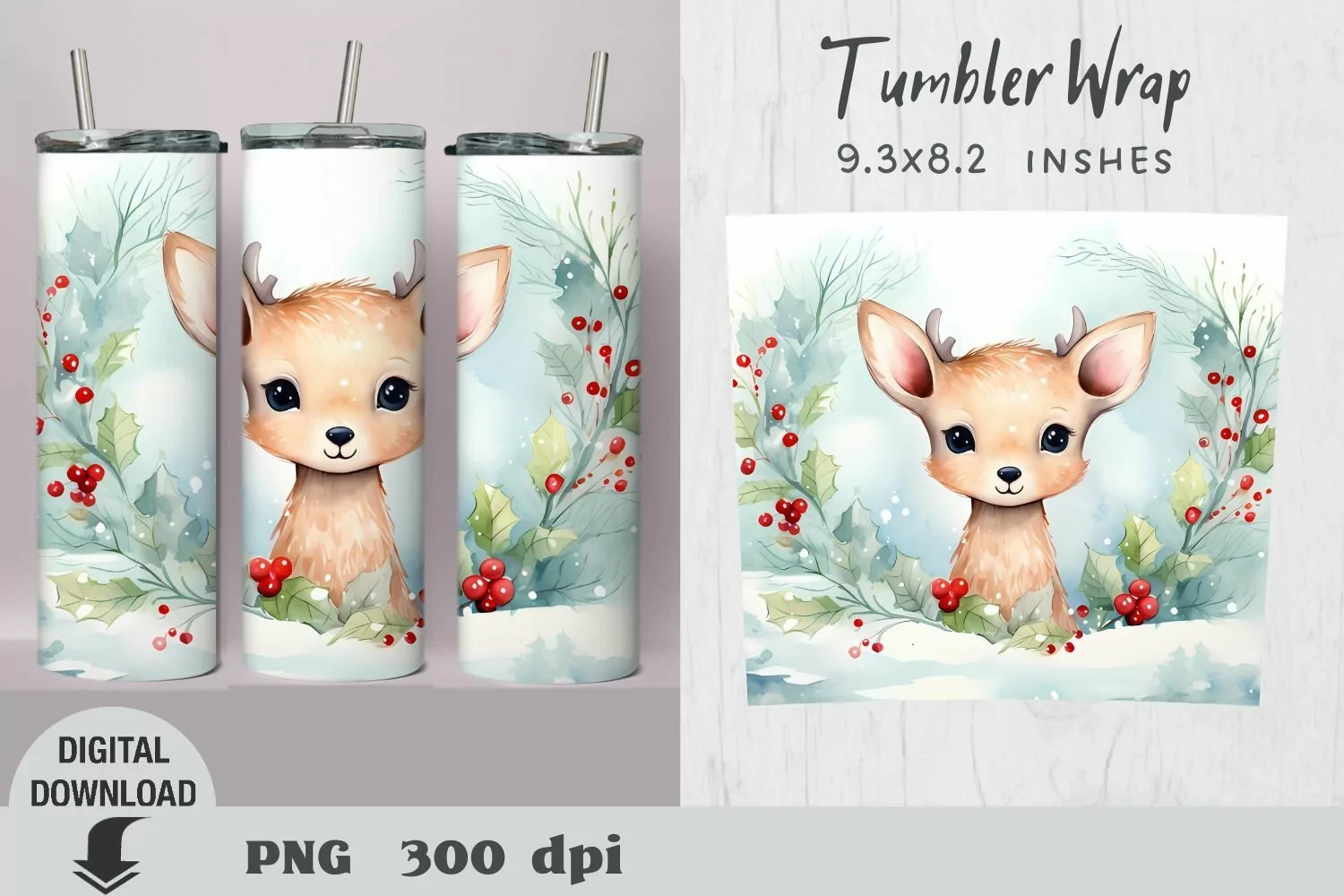 Christmas Tumbler Wrap, Christmas cute deer sublimation