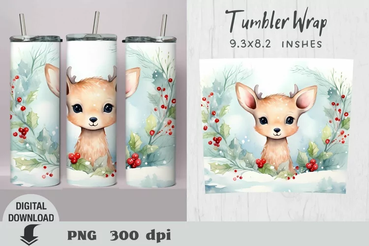Christmas Tumbler Wrap, Christmas cute deer sublimation example image 1