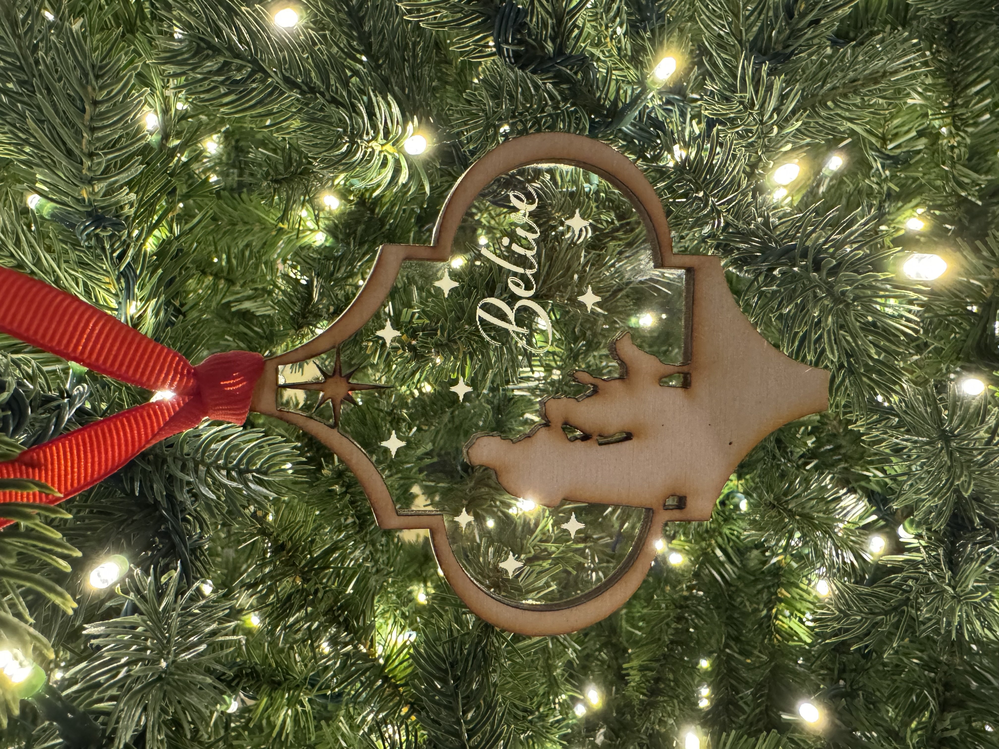 The issue I had after printing a whole sheet of acrylic (which is printed reverse to have engraving on back side” is the the “Believe” ornament is misspelled. It says “Belive”.