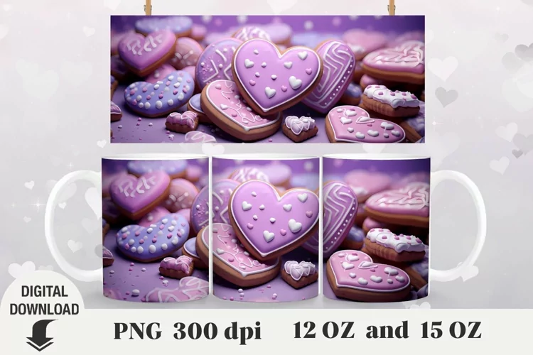 Sweet heart Mug Wrap, heart 3d Mug Sublimation, Valentine