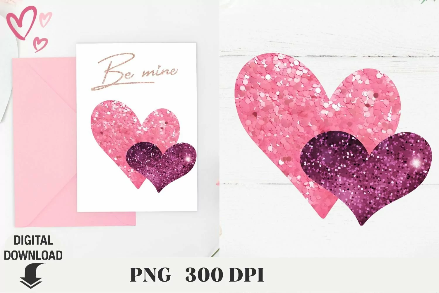Heart Pink glitter, Valentine sublimation, Valentine card example image 1