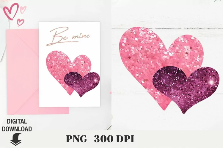 Heart Pink glitter, Valentine sublimation, Valentine card