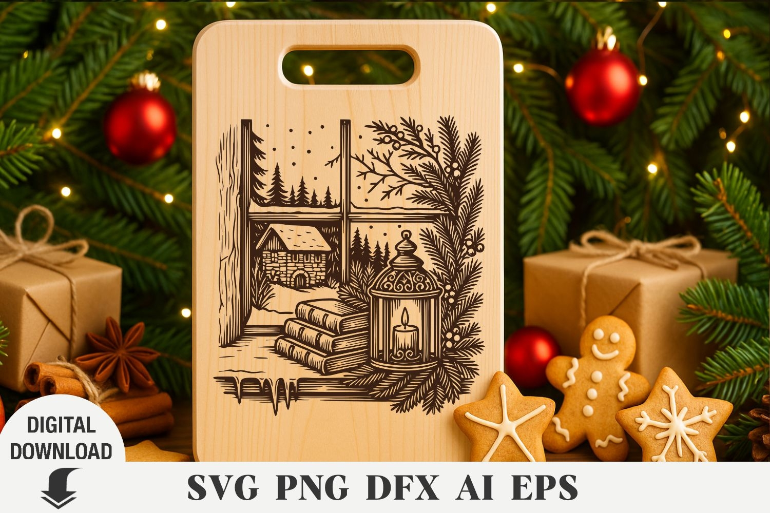 Christmas scene Laser cut , Cutting board, Christmas example image 1