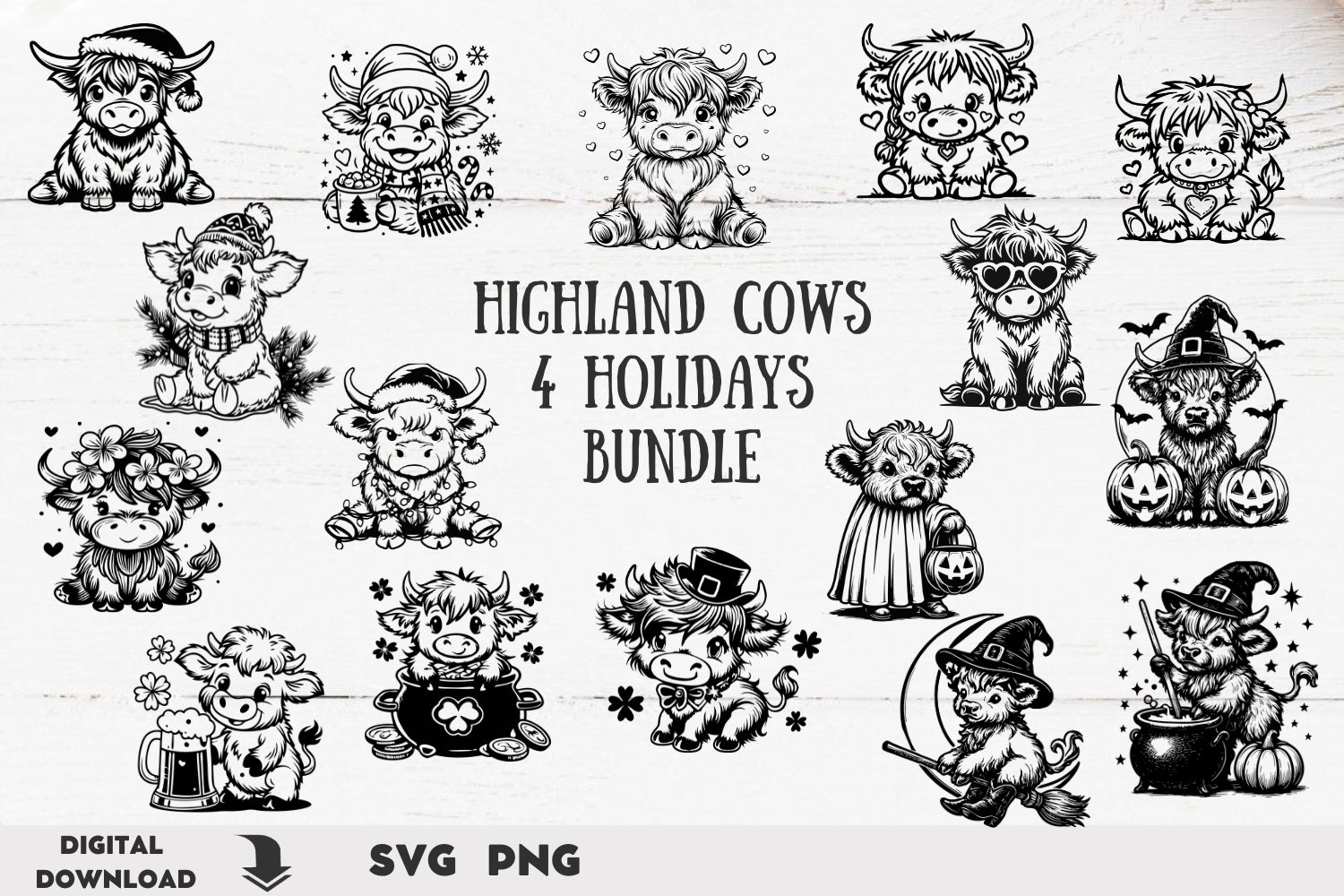Halloween Christmas Svg Valentine's Day St Patrick's Day Sublimation Design Floral Cow Baby Cow Svg Highland Cow Highland Cow Svg Christmas Highland Cow Svg
