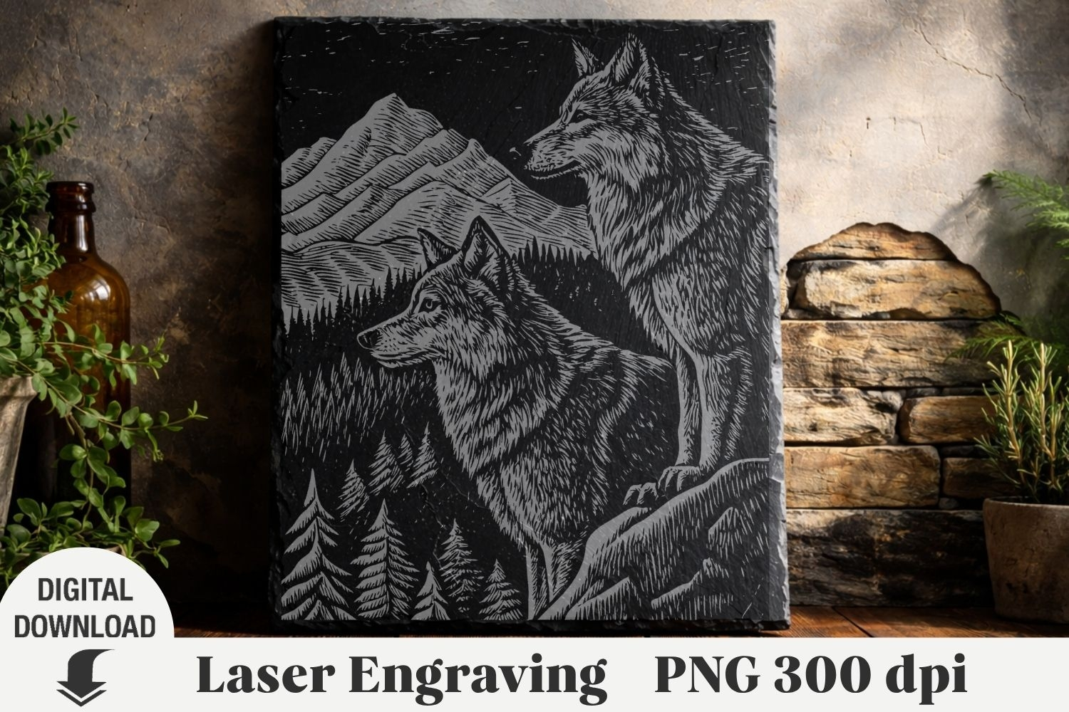 Wolf Laser Engraving, bear in the forest Engraving file PNG