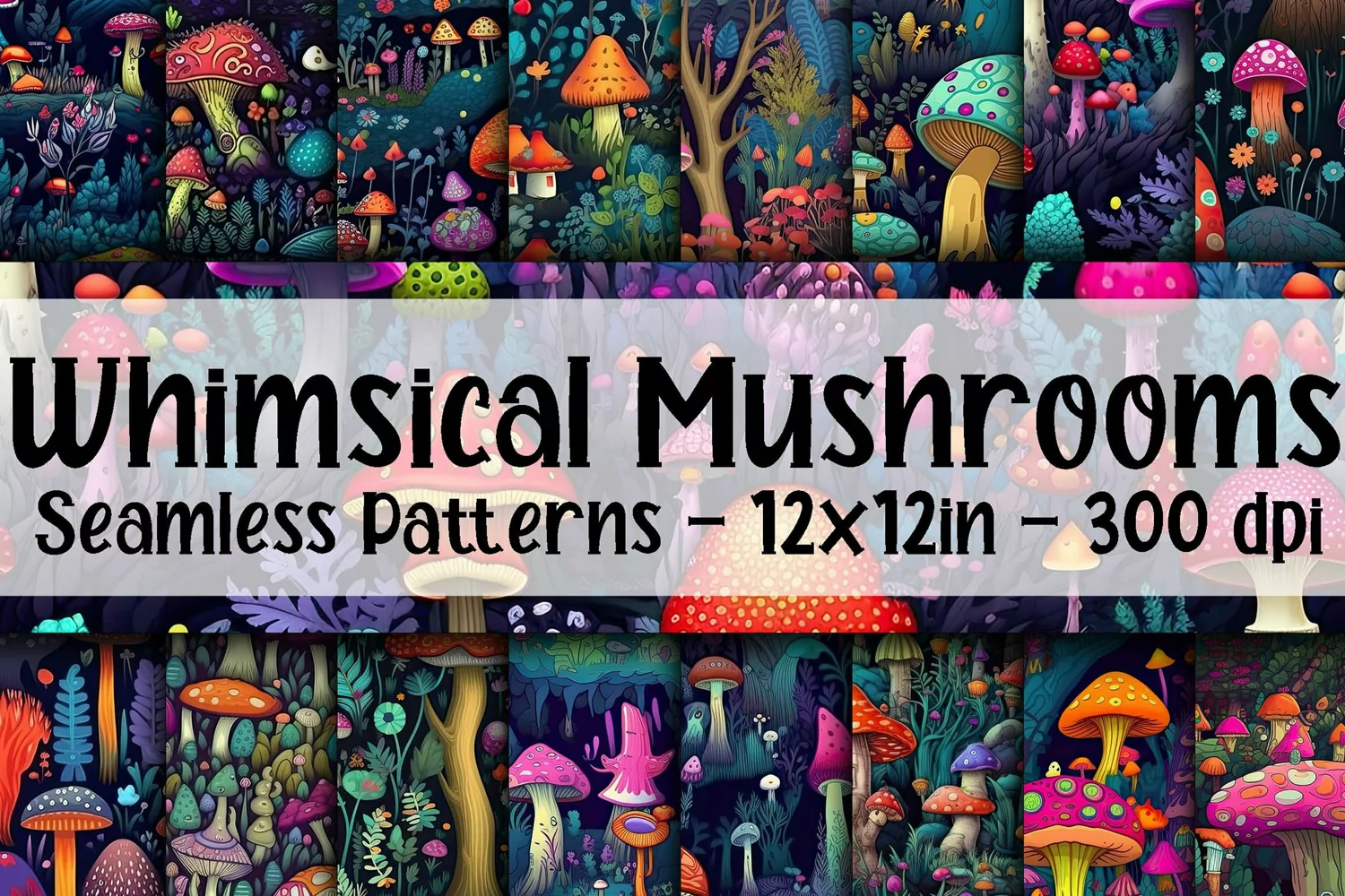 Digital Paper Seamless Patterns Scrapbook Paper Seamless Digital Paper Printable Digital Paper Seamless Digital Patterns Mushroom Digital Paper Colorful Mushrooms Whimsical Mushrooms Whimsical Mushrooms Pattern