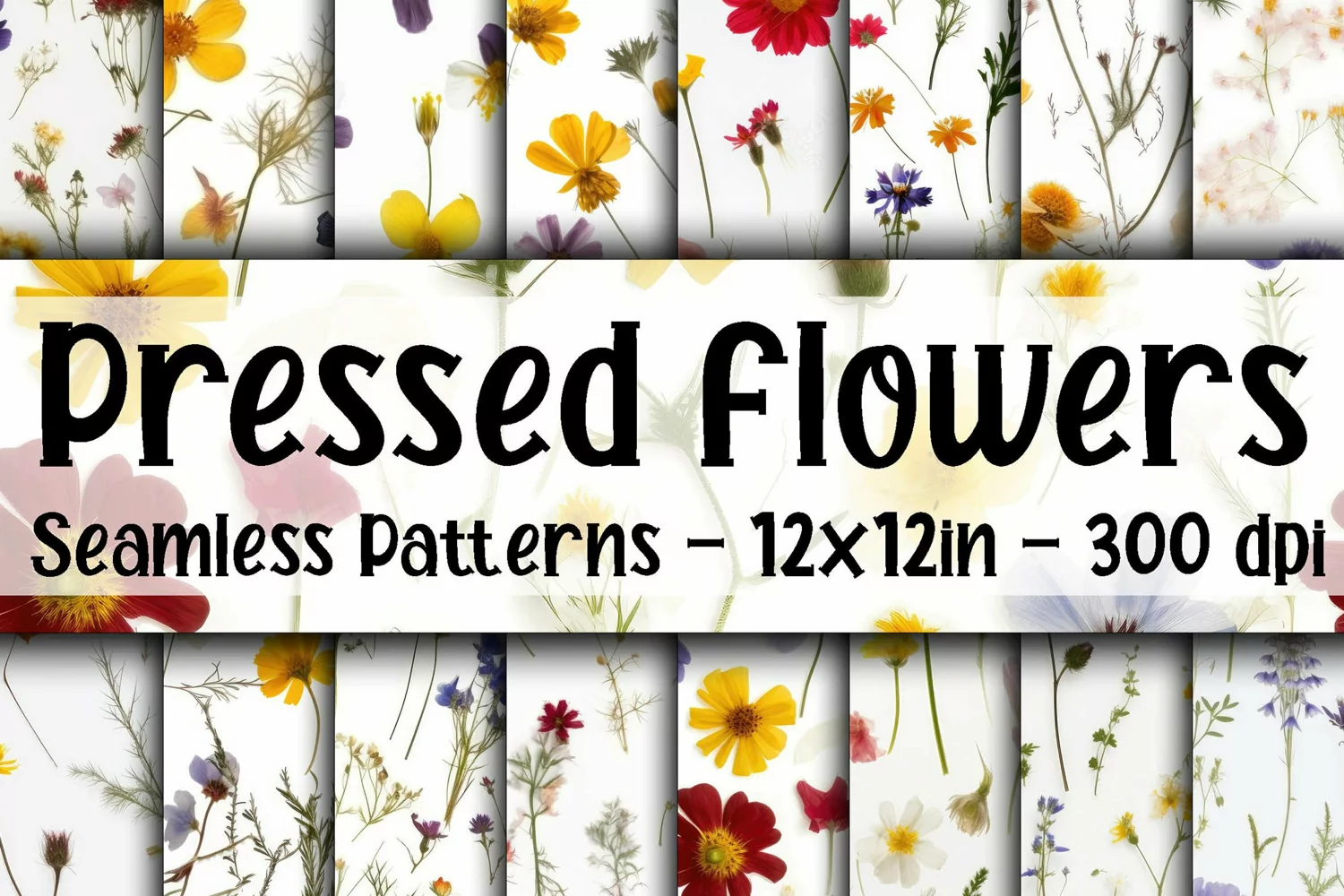 16 - 12" x 12" SEAMLESS Pressed Flowers, Jpeg Files, 300 dpi