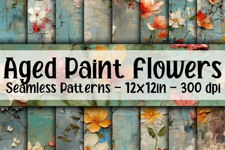 Similar Design Products to Aged Oil Paint Flowers Digital Papers - Seamless Patterns