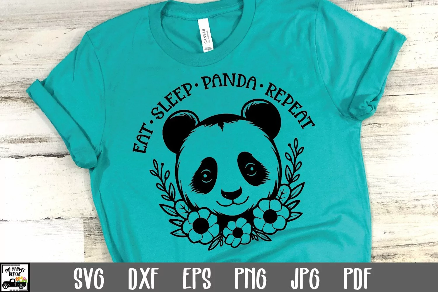 Eat Sleep Panda Repeat SVG File - Panda with Flowers SVG Cut File