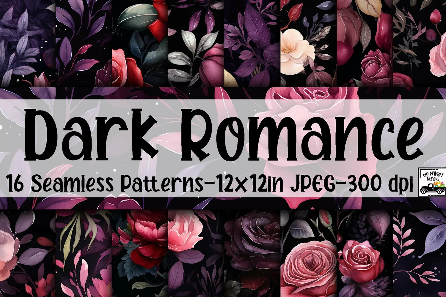 16 - 12" x 12" SEAMLESS Dark Romance Digital Papers, Jpeg Files, 300 dpi