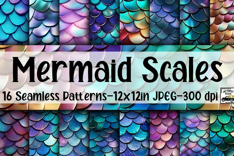 16 - 12" x 12" SEAMLESS Mermaid Scales Digital Papers, Jpeg Files, 300 dpi