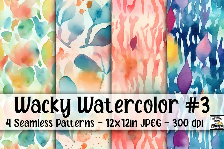 Wacky Watercolor Digital Paper #3 - 4 Seamless Patterns