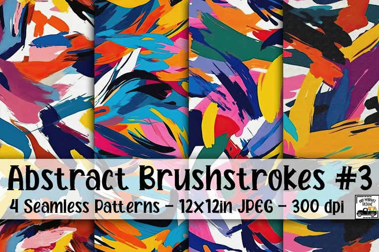 Abstract Brushstrokes Digital Paper #3 - 4 Seamless Patterns