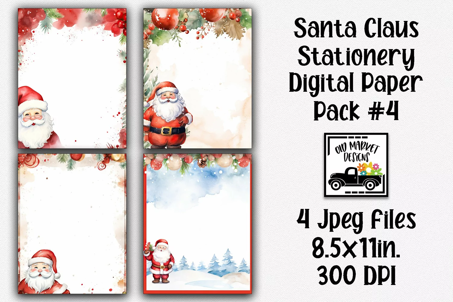 4 - 8.5" x 11" Santa Claus Letterhead Papers, Jpeg Files, 300 dpi (These are digital papers, not overlays.)
