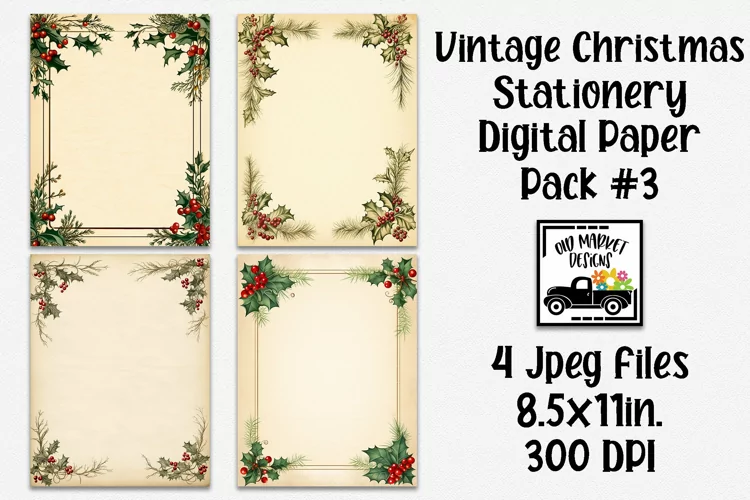 Vintage Christmas Stationery Digital Paper #3