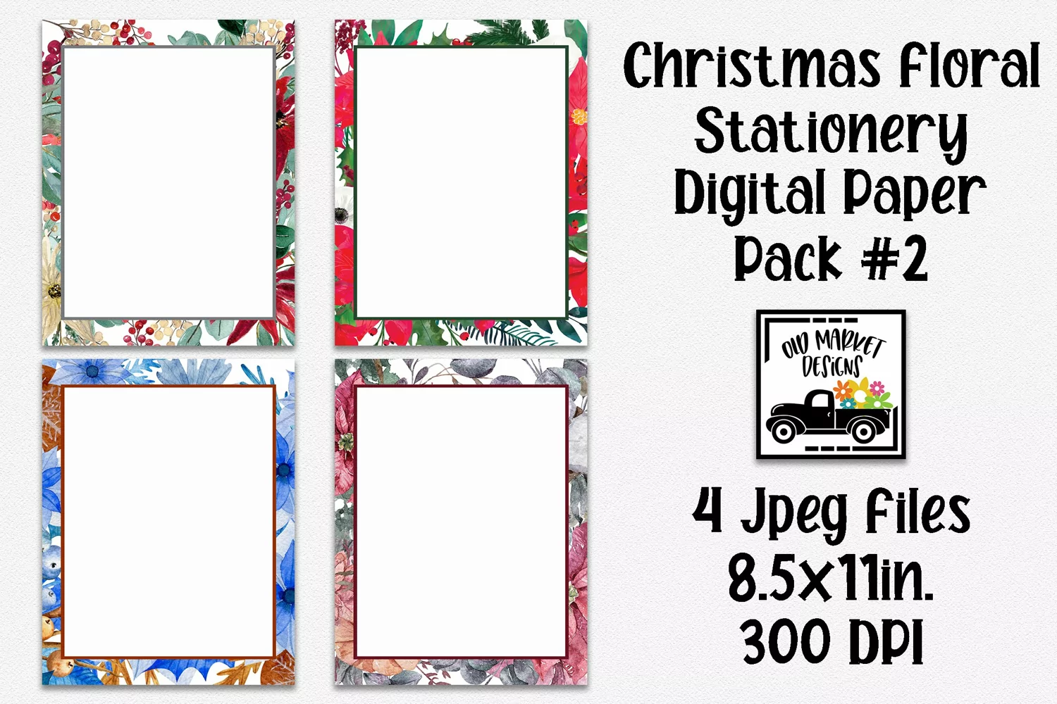 Christmas Floral Stationery Digital Paper #2 - 8.5x11"