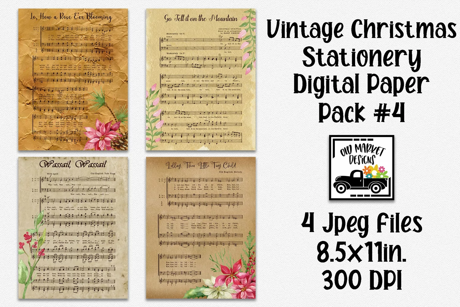 4 - 8.5" x 11" Vintage Christmas Music Digital Paper, Jpeg Files, 300 dpi (These are digital papers, not overlays.)
