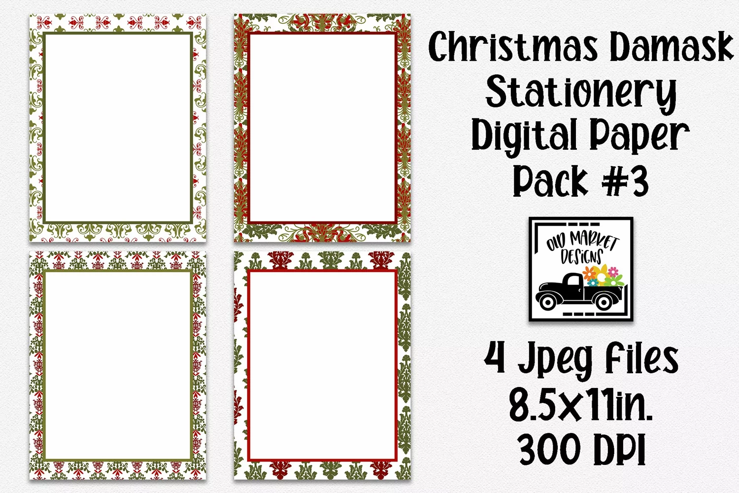 4 - 8.5" x 11" Christmas Damask Stationery Digital Paper, Jpeg Files, 300 dpi (These are digital papers, not overlays.)