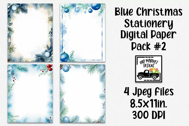 4 - 8.5" x 11" Blue Christmas Letterhead Papers, Jpeg Files, 300 dpi (These are digital papers, not overlays.)