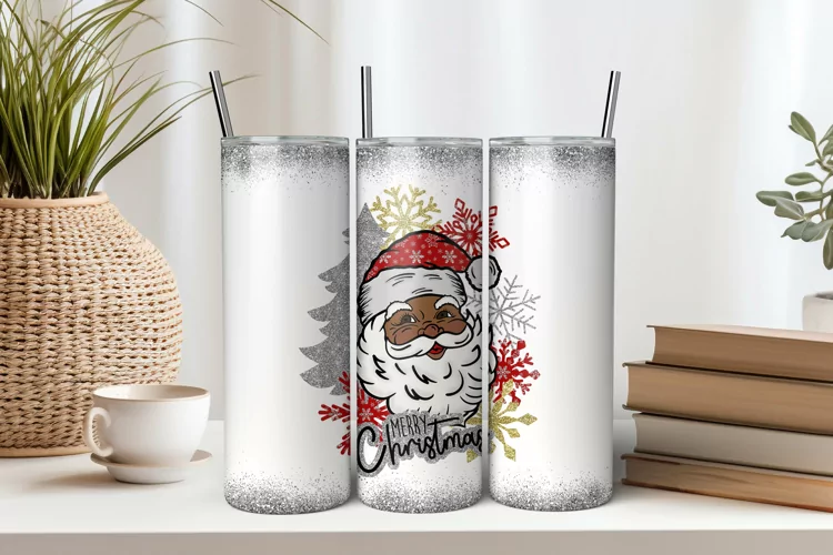 Merry Christmas Black Santa 20oz Tumbler Sublimation PNG