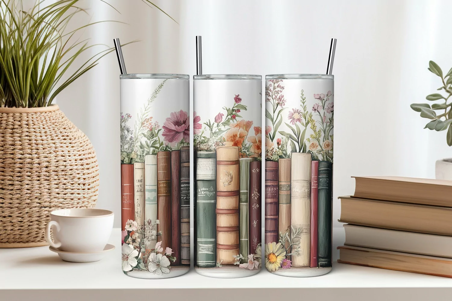 Books and Flowers 20oz Tumbler Sublimation PNG