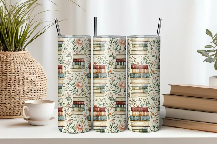 Books 20oz Tumbler Sublimation PNG
