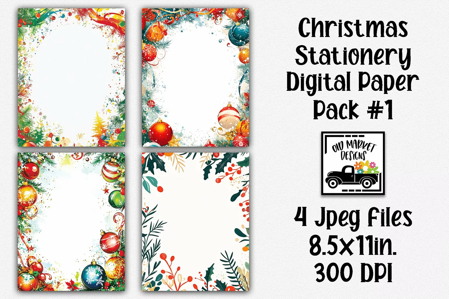 4 - 8.5" x 11" Abstract Christmas Letterhead Papers, Jpeg Files, 300 dpi (These are digital papers, not overlays.)