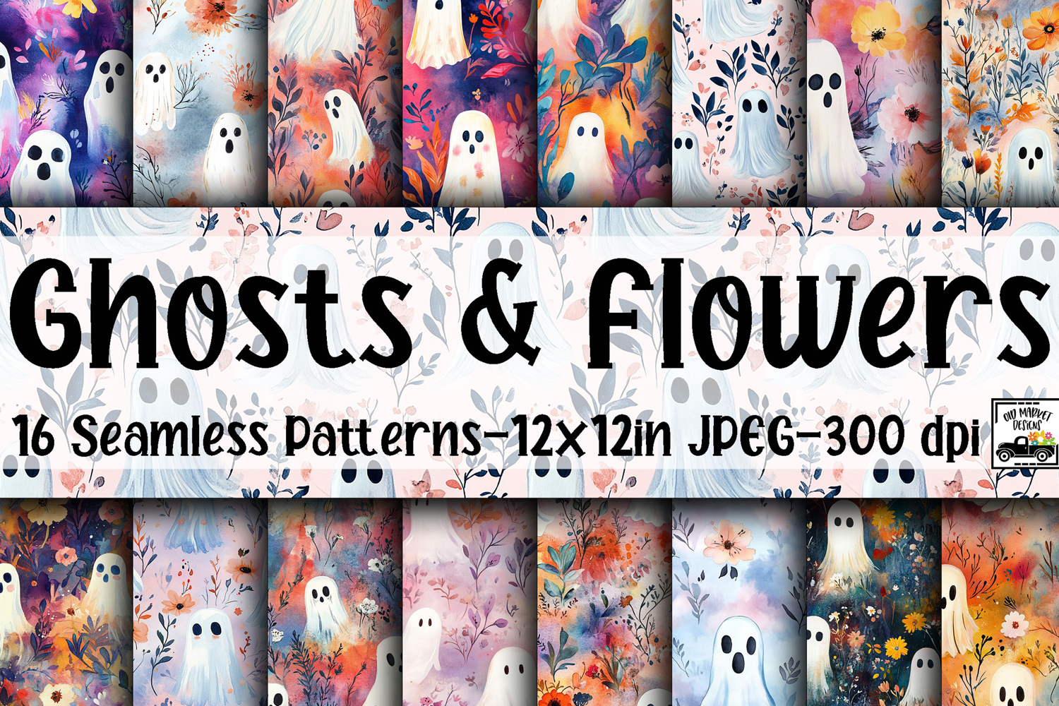 Ghosts and Flowers Digital Papers - 16 Seamless Patterns