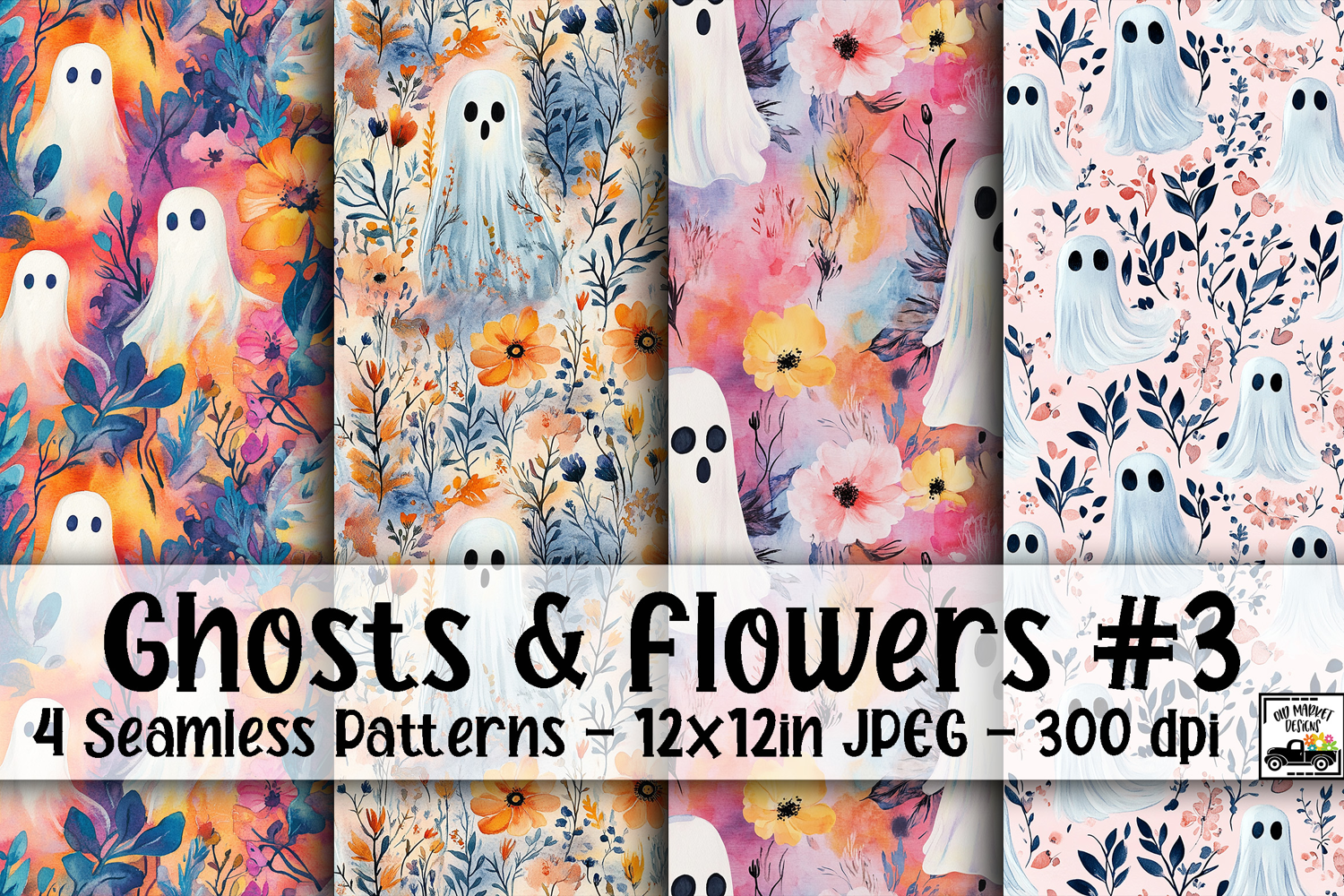Ghosts and Flowers Digital Paper #3 - 4 Seamless Patterns