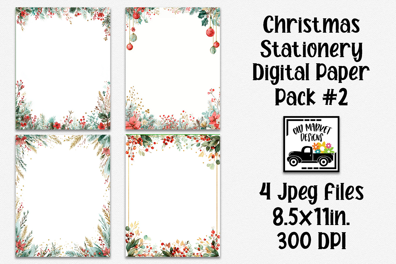 Watercolor Christmas Stationery Digital Paper #2 - 4 Papers