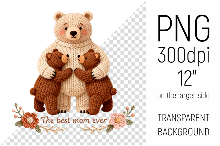 Mothers Day Sublimation Mom Gift Printable Family Love Clipart Best Mom Ever Design Mother Bear Png Nursery Decor Bear Bear Family Illustration Knitted Bear Clipart Cute Mom Animal Art Handmade Yarn Style Png