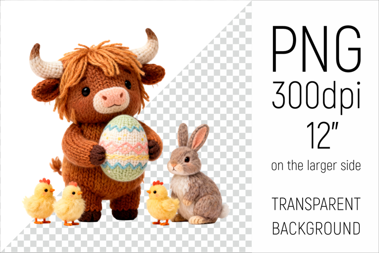 Easter Chick Clipart Easter Sublimation Design Highland Cow Clipart Easter Farm Animal Spring Farmhouse Png Easter Cow Png Knitted Cow Png Amigurumi Cow Art Cute Farm Nursery Art Handmade Yarn Animal