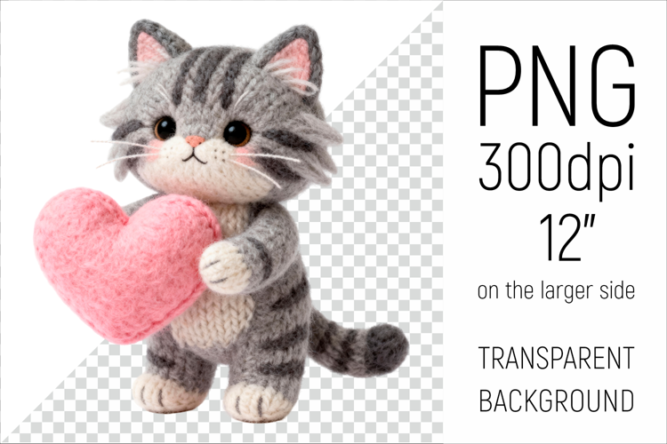 This adorable Valentine Cat PNG features a cute knitted Cat holding a pink heart, created in a cozy amigurumi and handmade yarn style.