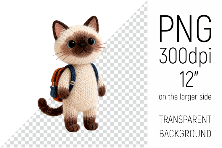 Knitted Graduation Cat. Cute School Animal Clipart is perfect for teachers, students, and creative entrepreneurs.