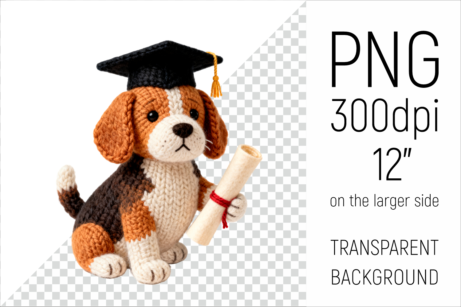 Knitted Graduation Beagle  Dog clipart. Perfect for school projects, graduation gifts, teacher appreciation designs, and educational materials.