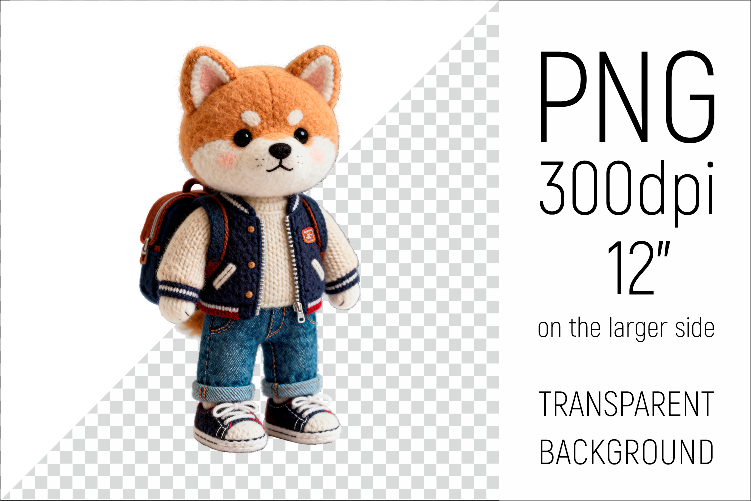 Knitted School Japanese Akita with Backpack Clipart. Perfect for school projects, graduation gifts, teacher appreciation designs, and educational materials.
