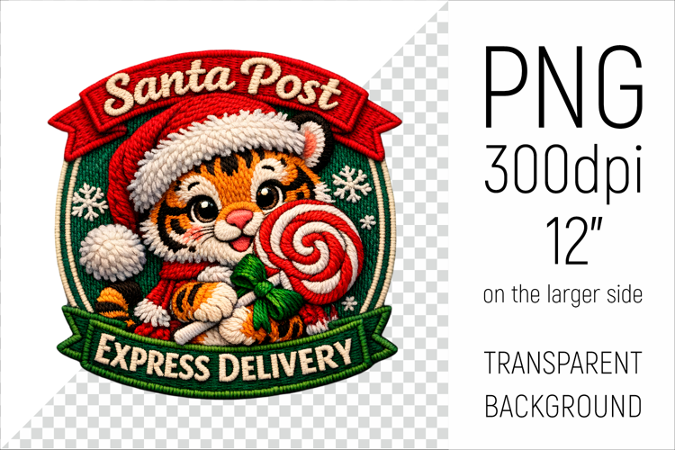 Winter Holiday Clipart Christmas Tiger Png Cute Christmas Animal Png Holiday Patch Style Png Embroidered Christmas Design Christmas Gift Design Png Santa Post Badge Express Delivery Badge Cute Tiger Christmas Art