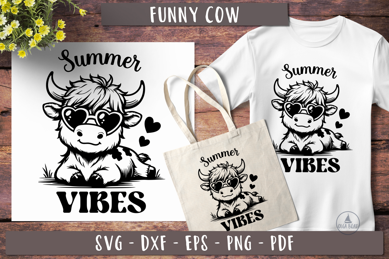 Summer Vibes Sarcastic Svg Quotes Baby Highland Cow Svg Cute Cow With Sunglasses Svg Funny Highland Cow Shirt Tote Bag Coffee Mug Wrap Highland Cow Black And White Clipart Funny Farm Animals Silhouette Cow With Heart Vector Illustration Sarcasm Svg Shirts Graphic