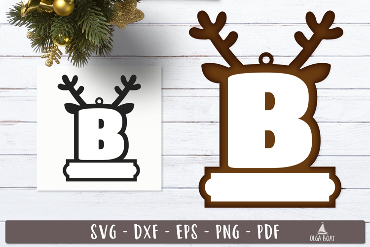 Letter B Laser Cut Monogram Svg 3d Layered Letter Christmas Personalized Ornament Christmas Ornament With Name Gift Tags Christmas Tag Svg Cricut Glowforge Vector Ornaments Reindeer Monogram Ornament Svg Custom Alphabet Laser Cut Files Reindeer Deer Letter With Antler Xmas Decor