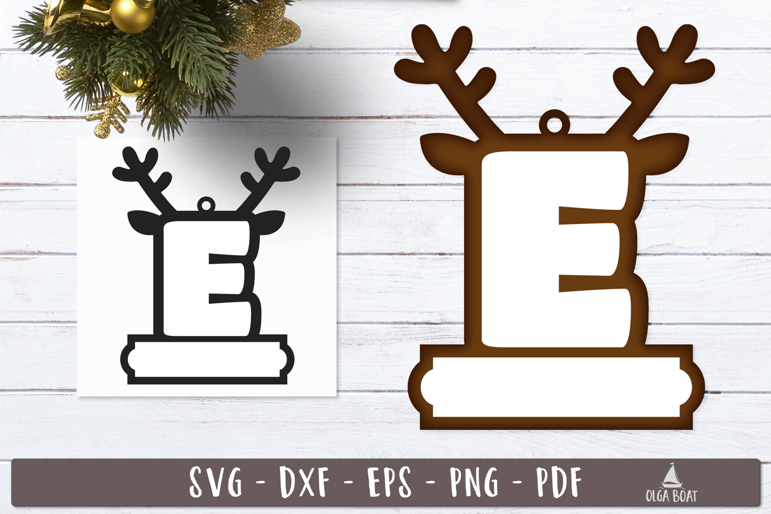 Reindeer Monogram Ornament perfect for laser cutting on Glowforge, Cricut Design Space, Silhouette, other laser machines, CNC routers, also compatible with Inkscape, CorelDraw, Adobe Illustrator.