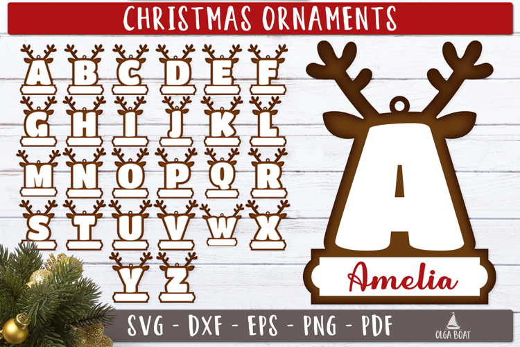 Laser Cut Monogram Svg 3d Layered Letter Christmas Personalized Ornament Christmas Ornament With Name Gift Tags Christmas Tag Svg Cricut Glowforge Vector Ornaments Custom Alphabet Laser Cut Files Reindeer Deer Letter With Antler Xmas Decor Reindeer Monogram Ornament Svg Bundle Kids Festive Ornament Cricut File