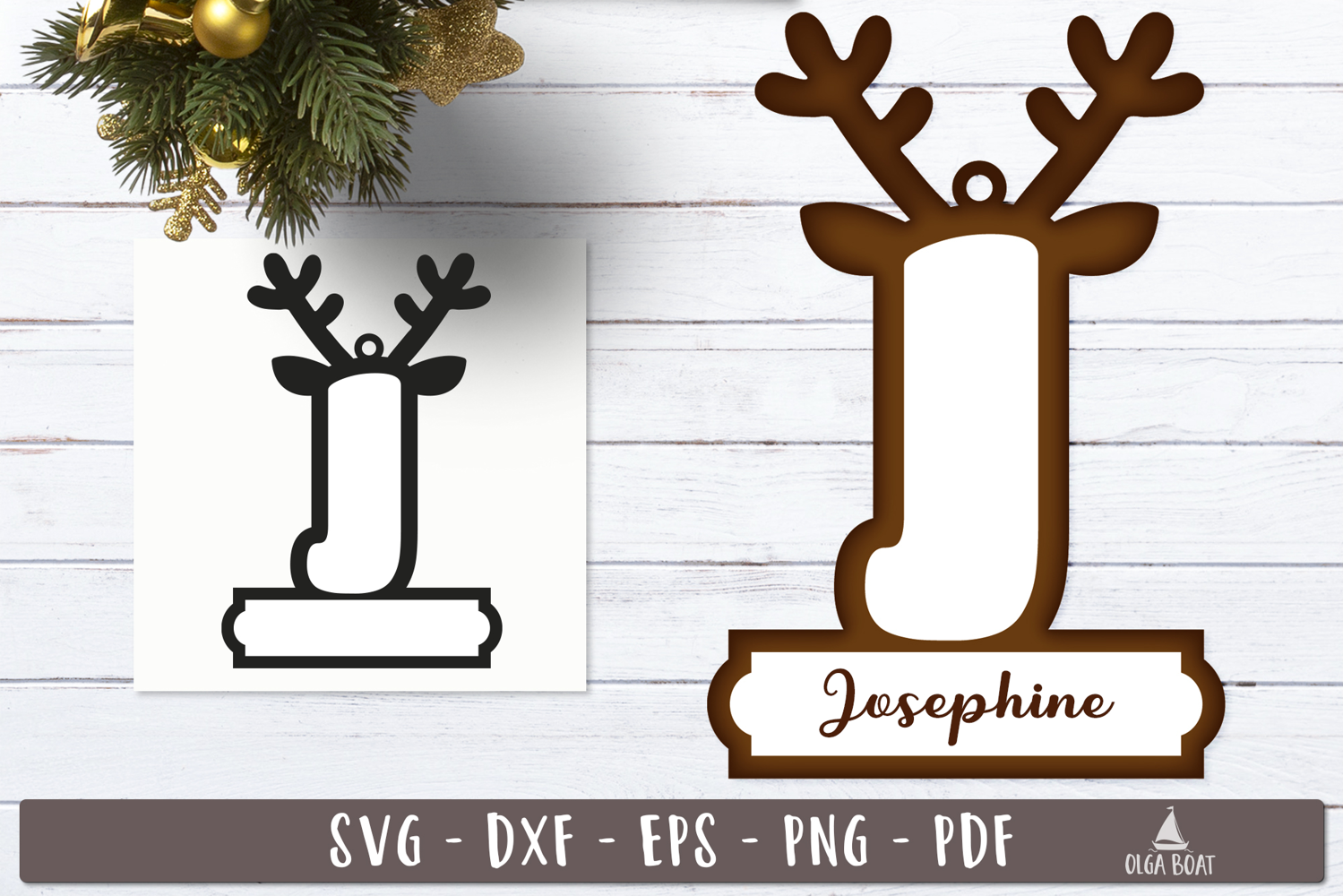 Letter J Laser Cut Monogram Svg 3d Layered Letter Christmas Personalized Ornament Christmas Ornament With Name Gift Tags Christmas Tag Svg Cricut Glowforge Vector Ornaments Reindeer Monogram Ornament Svg Custom Alphabet Laser Cut Files Reindeer Deer Letter With Antler Xmas Decor