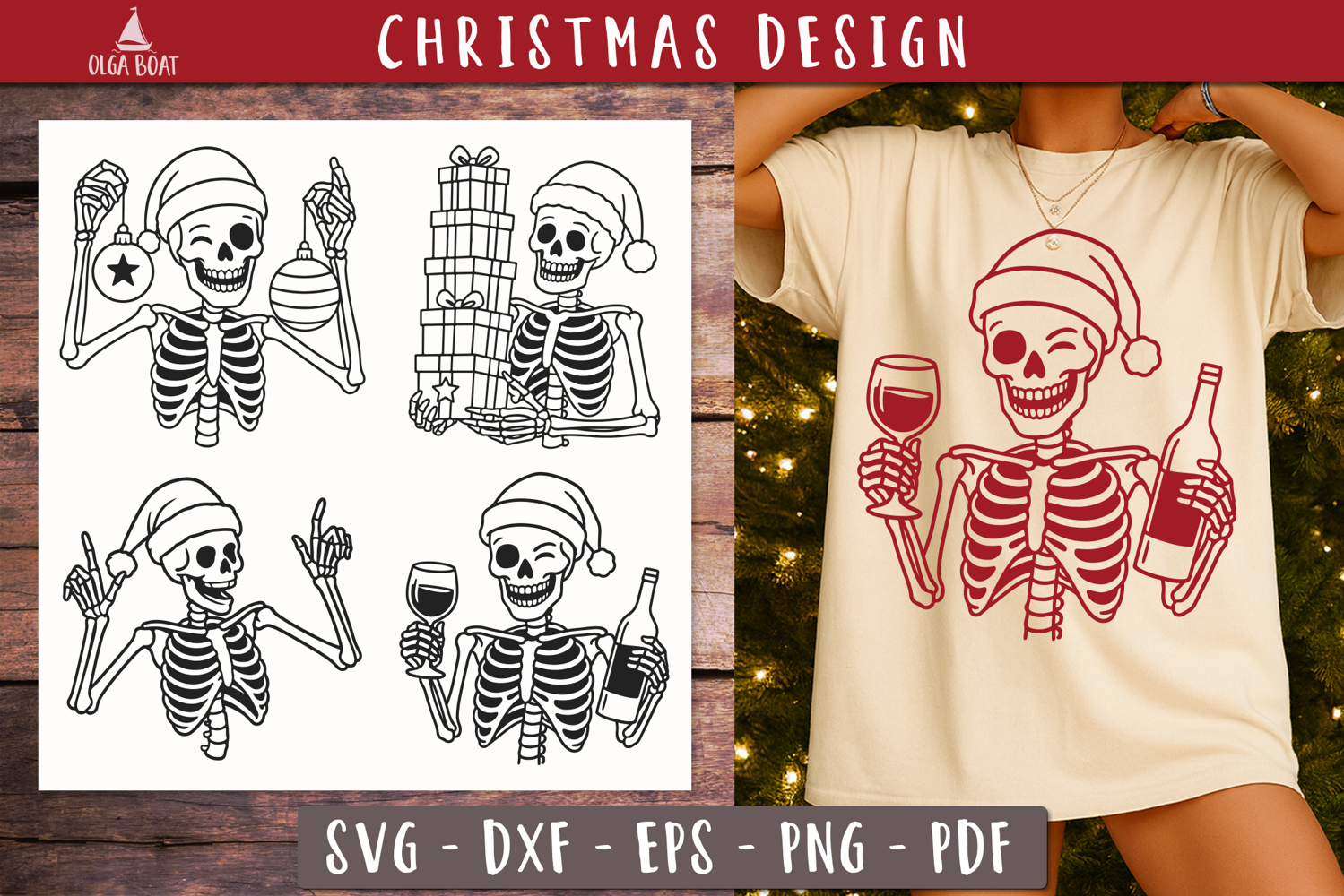 Winter Holiday Png Design Tote Bag Coffee Mug Wrap Black And White Clipart Silhouette Images Simple Line Art Design Funny Spooky Skeleton Png Clipart Festive Skeleton Christmas Svg Dark Holiday Creepy Santa Wine Skeleton T Shirt Xmas Skeleton Grunge Christmas Skull Santa Print Party Skeleton Illusrtations Funny Booze Cartoon Skeleton Svg