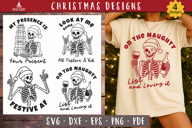 Funny Skeleton illustrations is perfect for Christmas cutting, prints, decor, cards, wall art, etc..