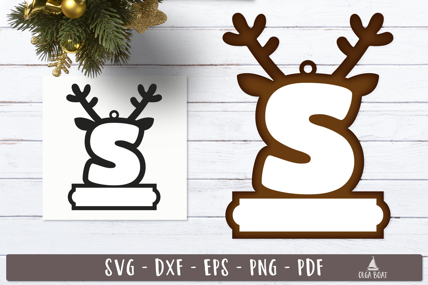 Letter S Laser Cut Monogram Svg 3d Layered Letter Christmas Personalized Ornament Christmas Ornament With Name Gift Tags Christmas Tag Svg Cricut Glowforge Vector Ornaments Reindeer Monogram Ornament Svg Custom Alphabet Laser Cut Files Reindeer Deer Letter With Antler Xmas Decor