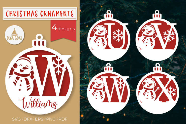 Snowman Monogram Ornament SVG Christmas Laser cut