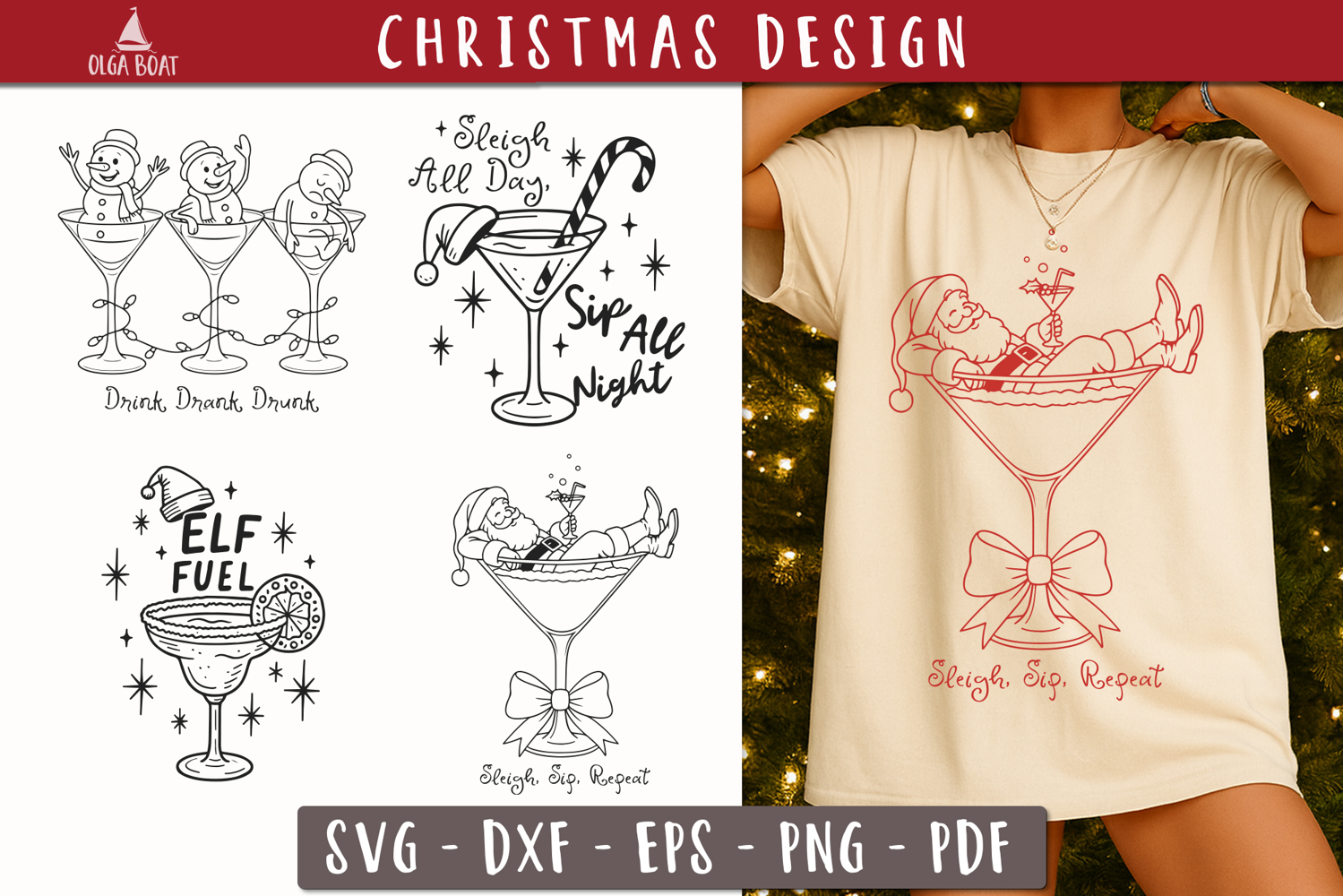 Christmas Cocktail illustrations is perfect for Christmas cutting, prints, decor, cards, wall art, etc..